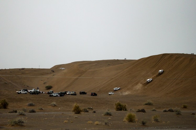 We had a BBQ that evening in the desert with some of Abdul’s pals, after driving a short way across the dunes. The chaps rigged a light up to the car battery and we rolled out a mat on a hill top. Another of their mates came to join us, and we watched his car lights turn off from the motorway about a mile away and then slowly make its way towards us. Driving over the dunes, following a Whatsapp location at first and then our bright light. He had a desert ready 4×4 that didn’t need roads.