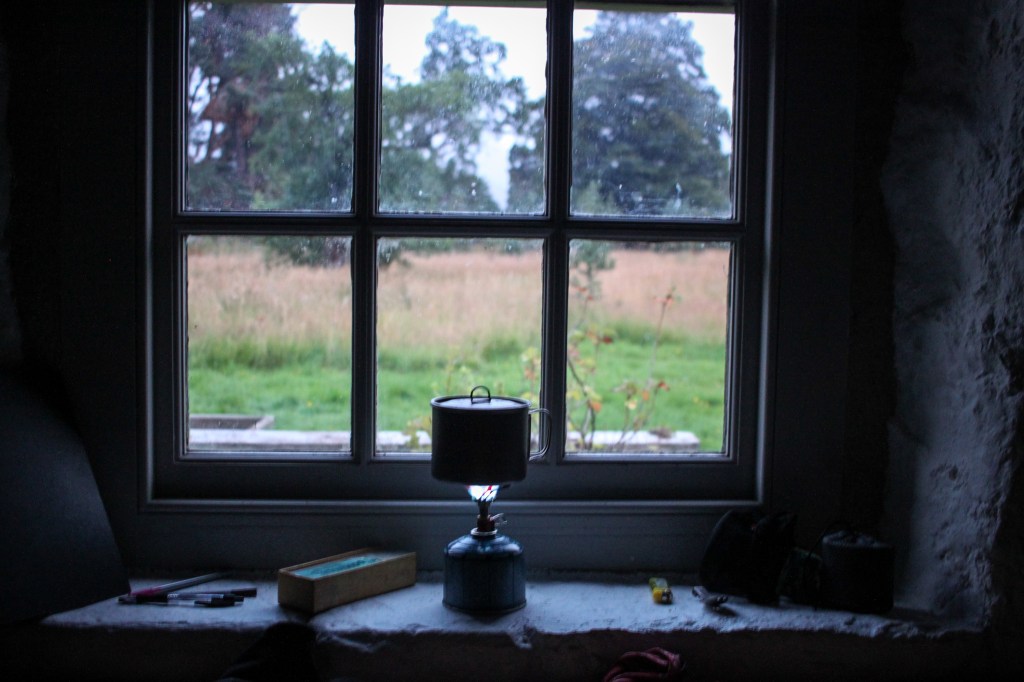It was a blessing to be reach somewhere dry just as light was fading. It had been an incredibly wet day. And what a bothy it was! By far the ‘poshest’ I’ve ever seen in Scotland. It even had a toilet block built in a separate building. I lit some candles and settled in for the night.