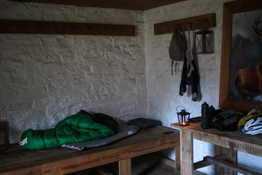 There’s a remote bothy up in the mountains in a really exposed valley at the top. Nothing more than a shed – but could be a life saver if needed up there. It was raining again, so I popped inside for my packed lunch.