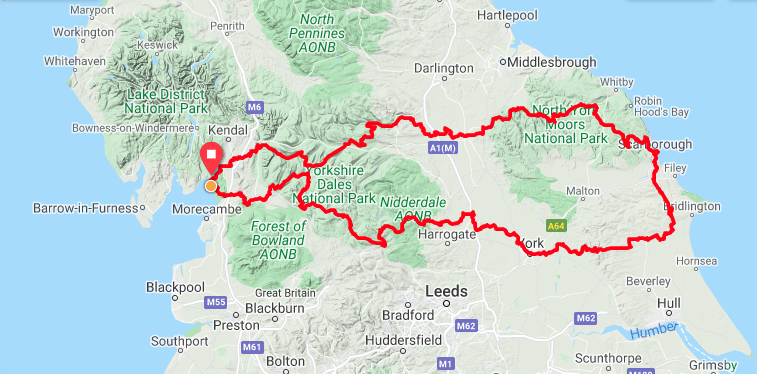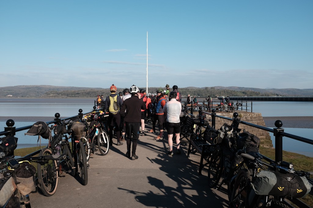 The morning of departure was gorgeous. We gathered at Arnside pier and rolled out at 8am. There were around 60 tracked riders, but the trackers weren’t mandatory and there could have been as many as 100 starters. It was cool to see so many people loaded up and rolling out together.