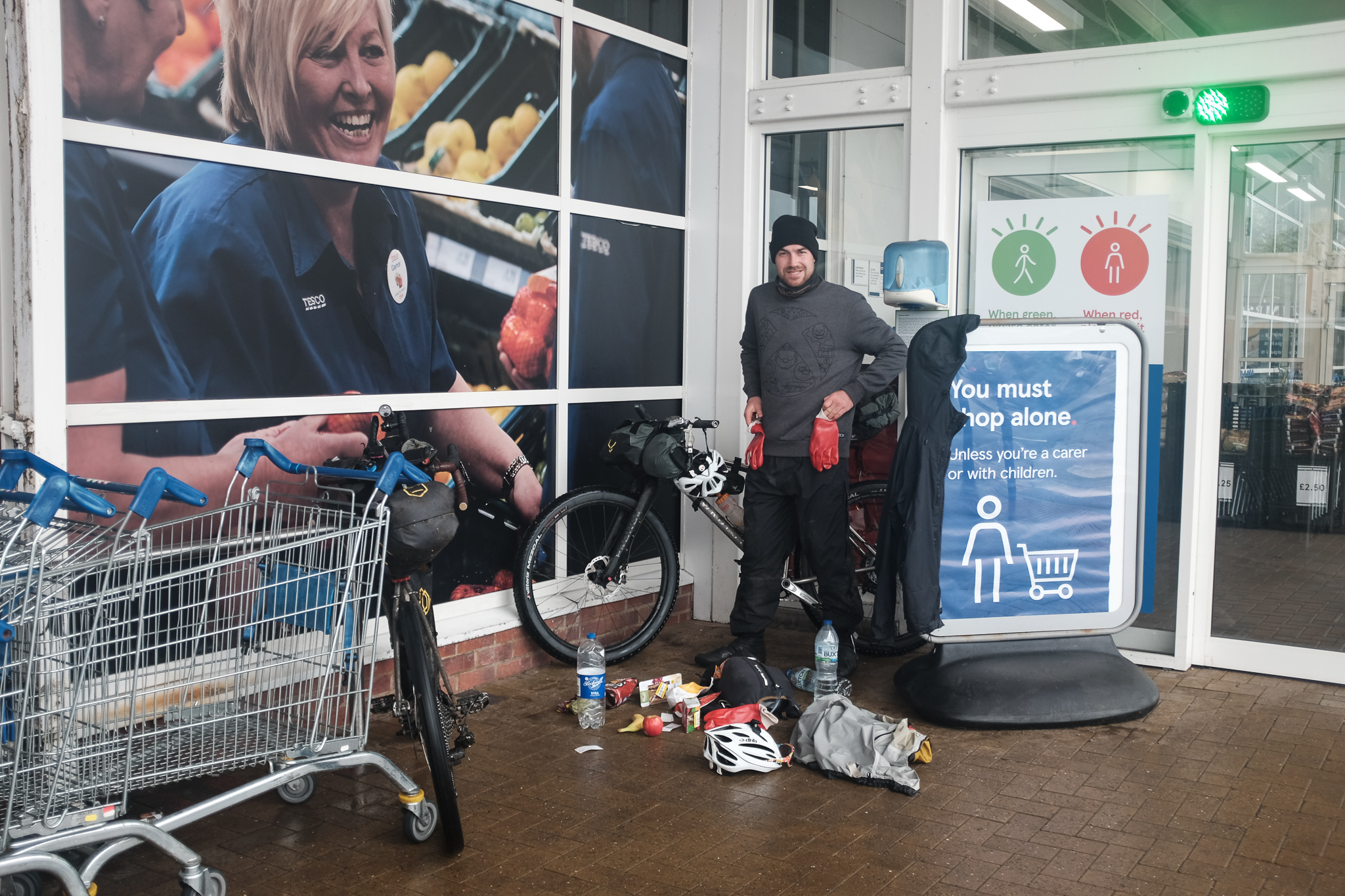 We pushed on to Catterick Garrison, where we found our next fast-food-induced momentary respite from the weather: waiting on our takeaway from McDonalds. Once again we asked if we might be able to eat inside, but were told to move on. Instead we sat by the Tesco supermarket under shelter, feeling sorry for ourselves. We were so wet and cold. It was so far from being fun.