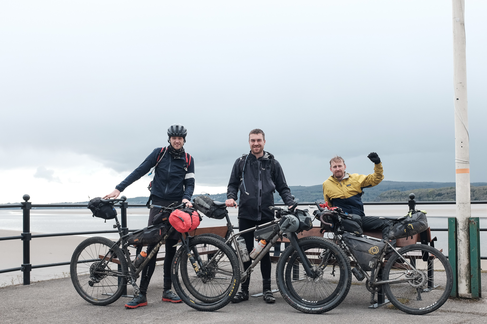 We were soon caught up by Tom, another participant who was one of the final tracked riders still moving. We rolled on as a trio over the last few fields and back to the startline. The rain had eased, but it was still a dark and overcast day. The pier in Arnside was eerily quiet, quite the opposite of that bustling morning under blue skies when we’d set-off. There wasn’t a single person there. We took our celebratory finish-line photos and shared a pint with Tom, before grabbing some extra beers for the train home.